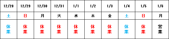 誠に勝手ながら、下記日程を年末年始休業とさせて頂きます。